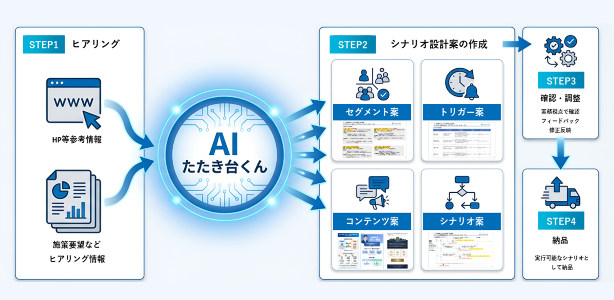 「たたき台くん」を活用したシナリオ設計の流れ