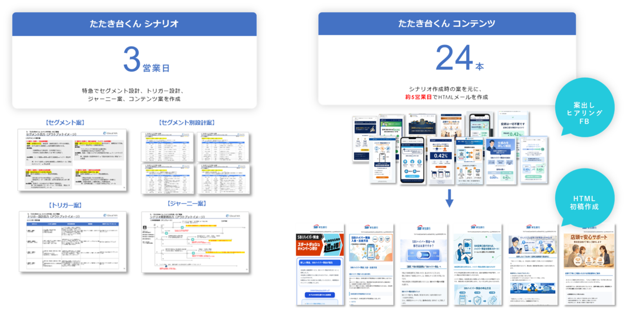 【たたき台くん機能拡充】MA施策の「設計から制作まで」をAIで高速化シナリオ設計機能を追加し、SBI新生銀行で実証